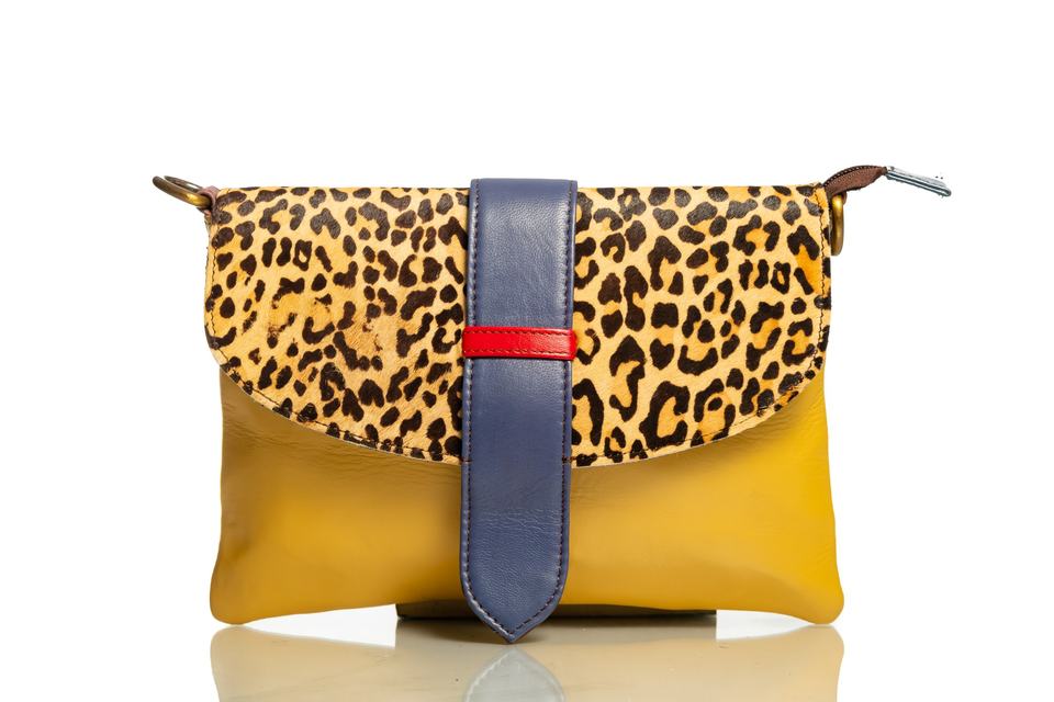 กระเป๋าคาดไหล่หนังแท้ลายเสือชีตาห์สำหรับผู้หญิงมีสายสะพายไหล่พิมพ์ลายสัตว์