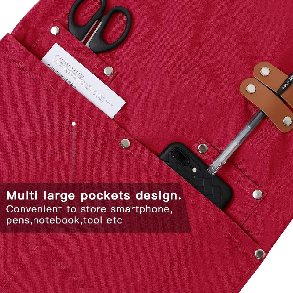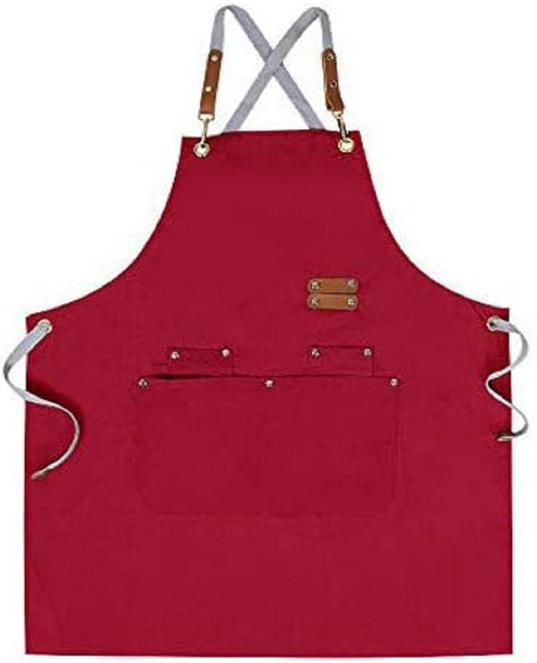 ผ้ากันเปื้อนเชฟสำหรับผู้ชายและผู้หญิง มีกระเป๋า ผ้ากันเปื้อนผ้าแคนวาสสำหรับทำครัว อบขนม ศิลปะ วาดภาพ ผ้ากันเปื้อนทำงานแบบไขว้หลัง