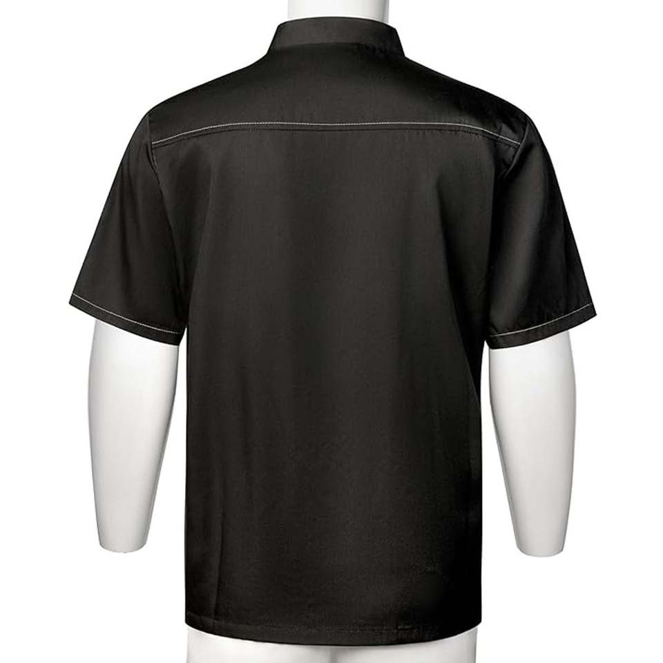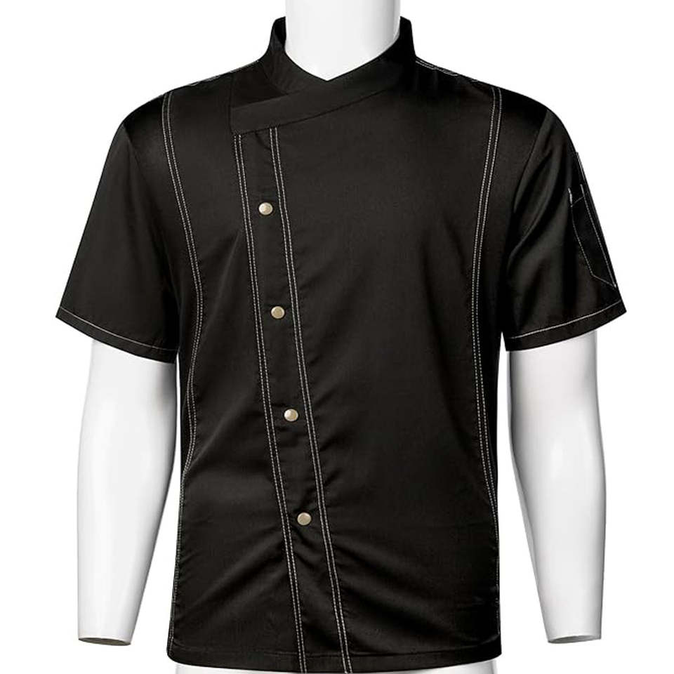 แจ็กเก็ตเครื่องแบบครึ่งแขนเสื้อทำจากโพลีเอสเตอร์สำหรับเชฟตัวปิดกระดุมสำหรับร้านอาหารและโรงแรม