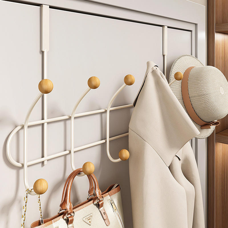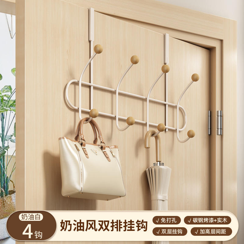 ราวแขวนเสื้อโค้ทแบบติดผนัง ชั้นวางของแบบสองแถว ยี่ห้อเชฟจุน รุ่นโอเวอร์ดอร์ฮุค วัสดุไม้ ไม่ต้องเจาะผนัง ใช้ได้ในห้องนอนและห้องนั่งเล่น
