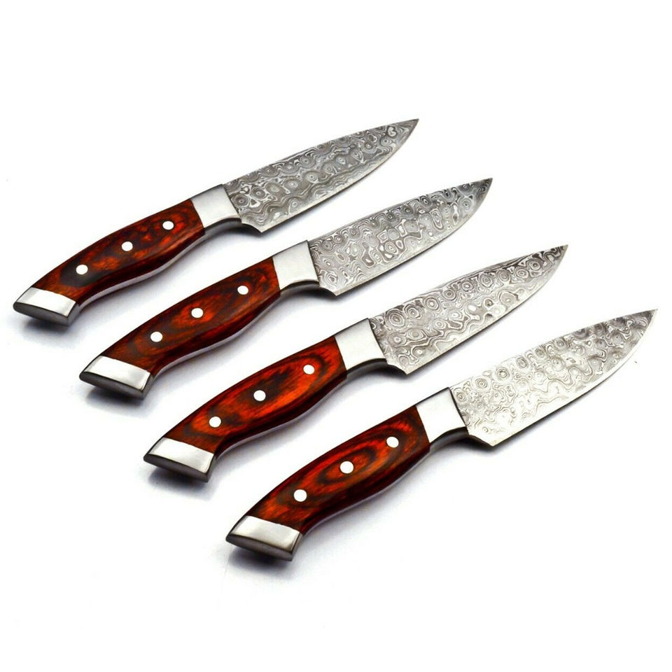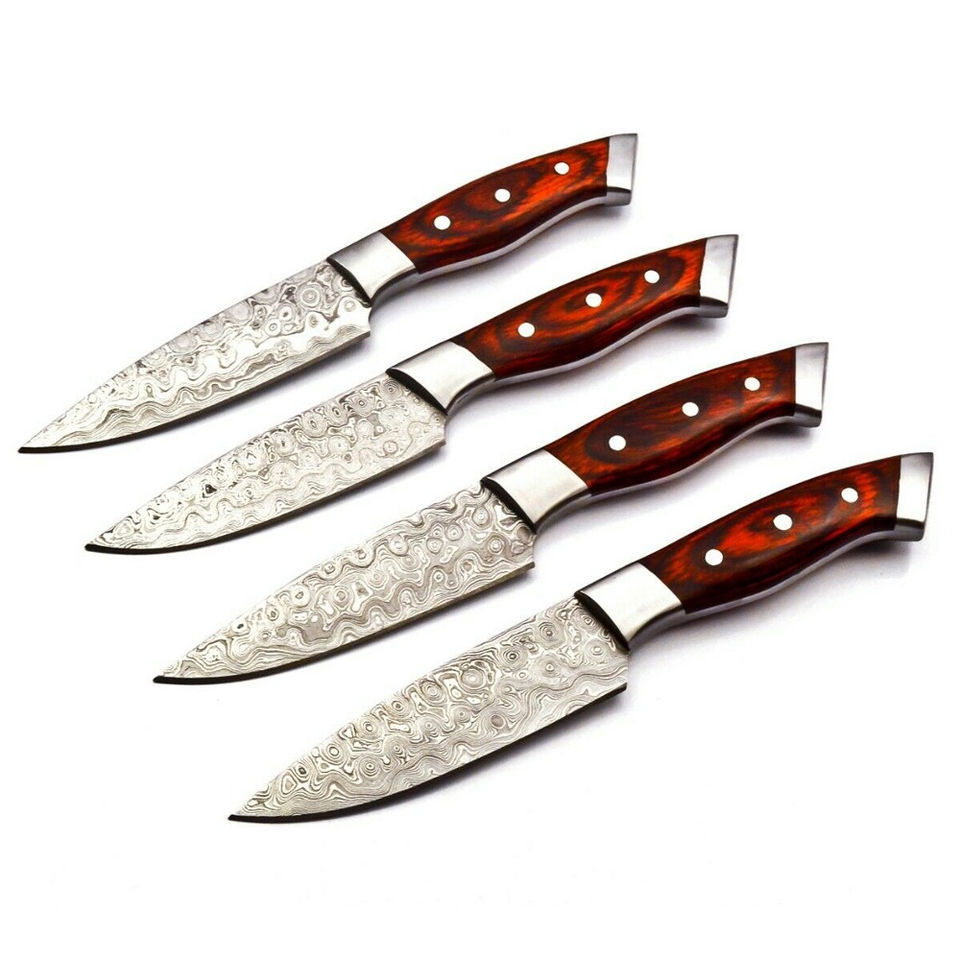 ชุดมีดเชฟทำจากเหล็กดามัสกัสแท้ทำด้วยมือมีมือจับไม้เป็นพิเศษมีความทนทานสูง