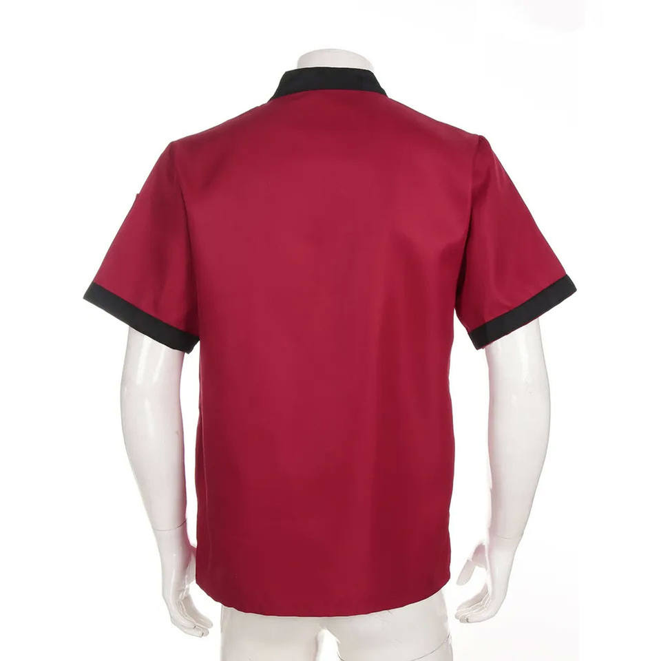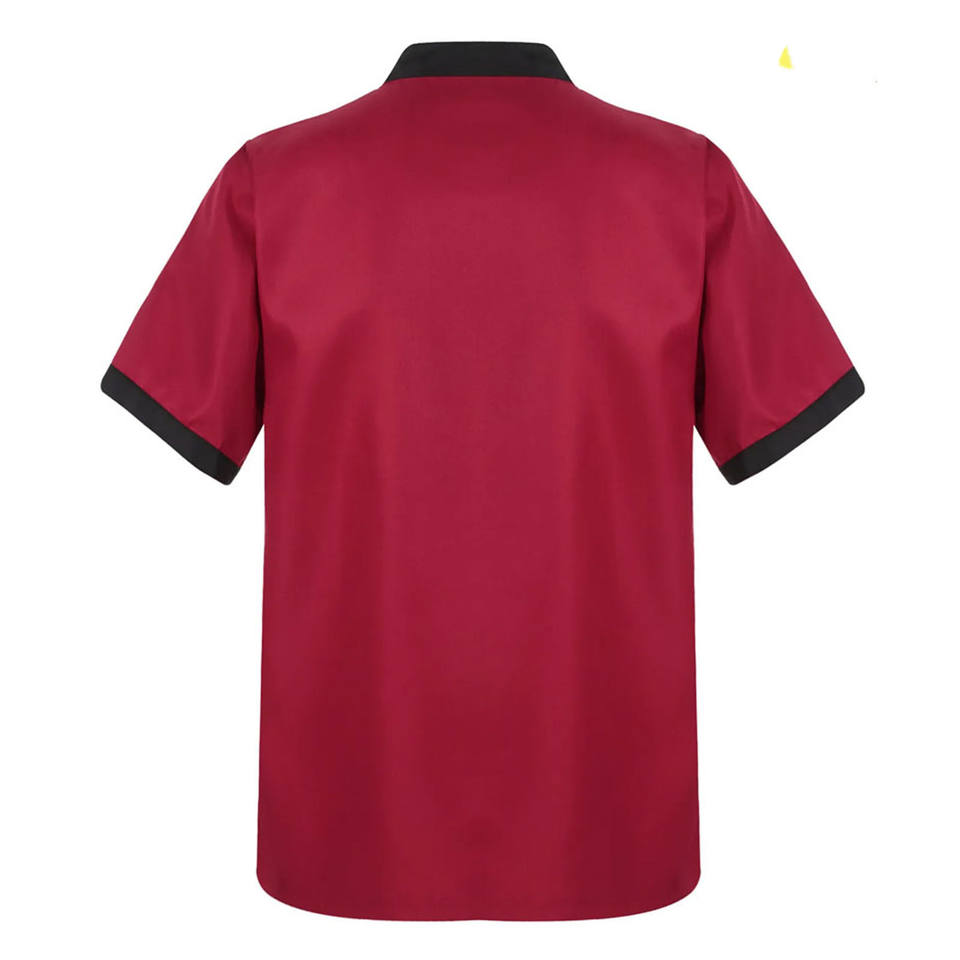 เสื้อยืดเชฟพนักงานครัว ระบายอากาศได้ดี ผลิตจากผ้าผสมโพลีเอสเตอร์ 65% และผ้าฝ้าย 35% สีดำและสีขาว สำหรับพนักงาน