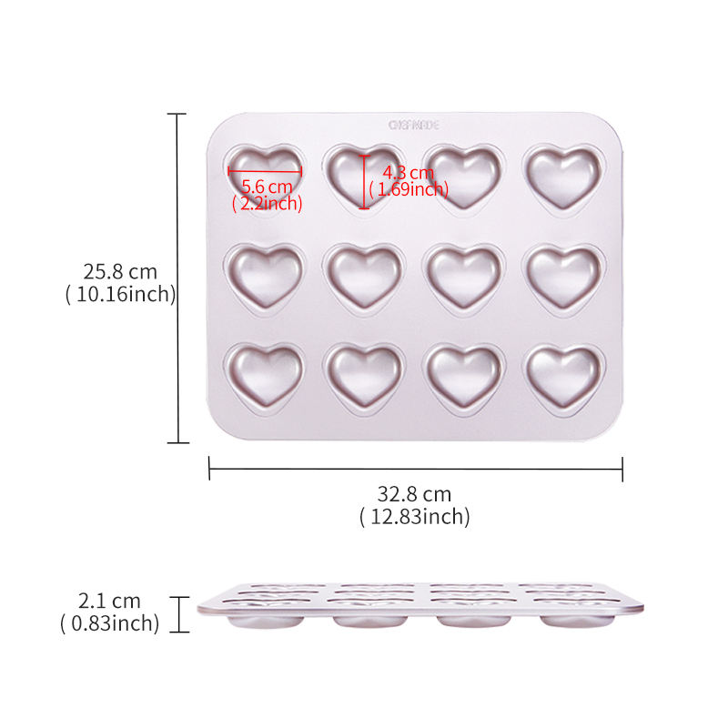 Chefmade WK9916 Non-Stick Bakeware 12 Cup Non-stick Heart Shape Muffin Cake Mould Pan