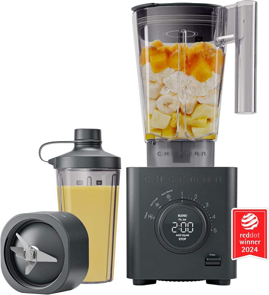 เชฟแมน ออบลิฟิเตอร์เครื่องปั่นแบบตั้งโต๊ะขนาด 48 ออนซ์ มอเตอร์ 1380 วัตต์สำหรับบดน้ำแข็งและผลไม้แช่แข็ง ฟังก์ชั่นปั่นอัตโนมัติ พร้อมโถขนาด 20 ออนซ์