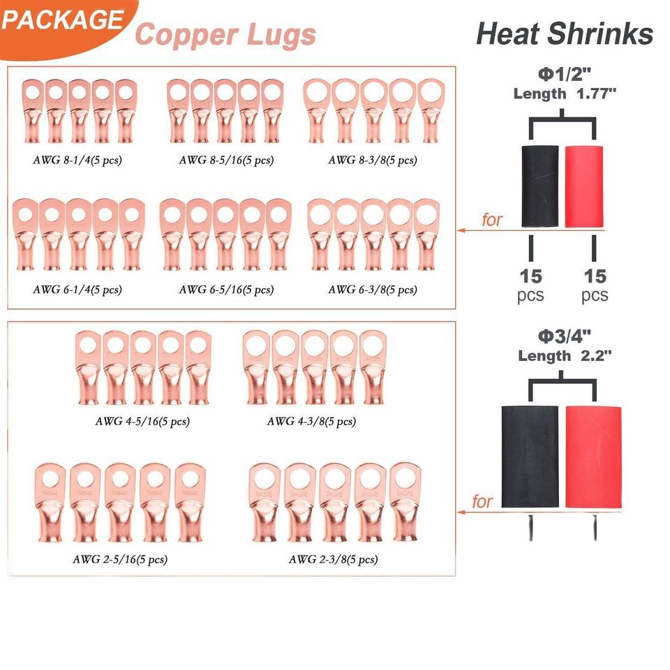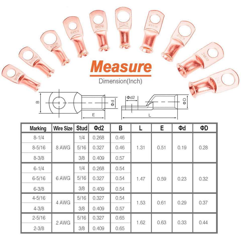 ขั้วต่อสายไฟฟ้าทองแดงสำหรับงานวิศวกรรมเคมี ขนาด 8-79 AWG แบบ Crimp Terminals มาตรฐานอเมริกา ขั้วต่อสายไฟแบบเร็ว 100 ชิ้น