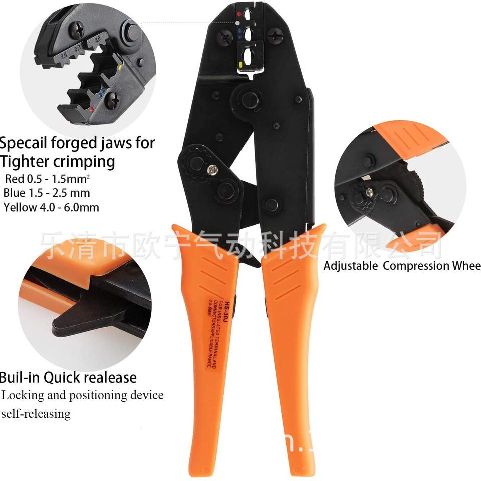 เครื่องมือจีบสายไฟเคมีอุตสาหกรรม HS-30J 16 Awg แบบเข้าด้านหน้า เหล็กเกรดอุตสาหกรรม