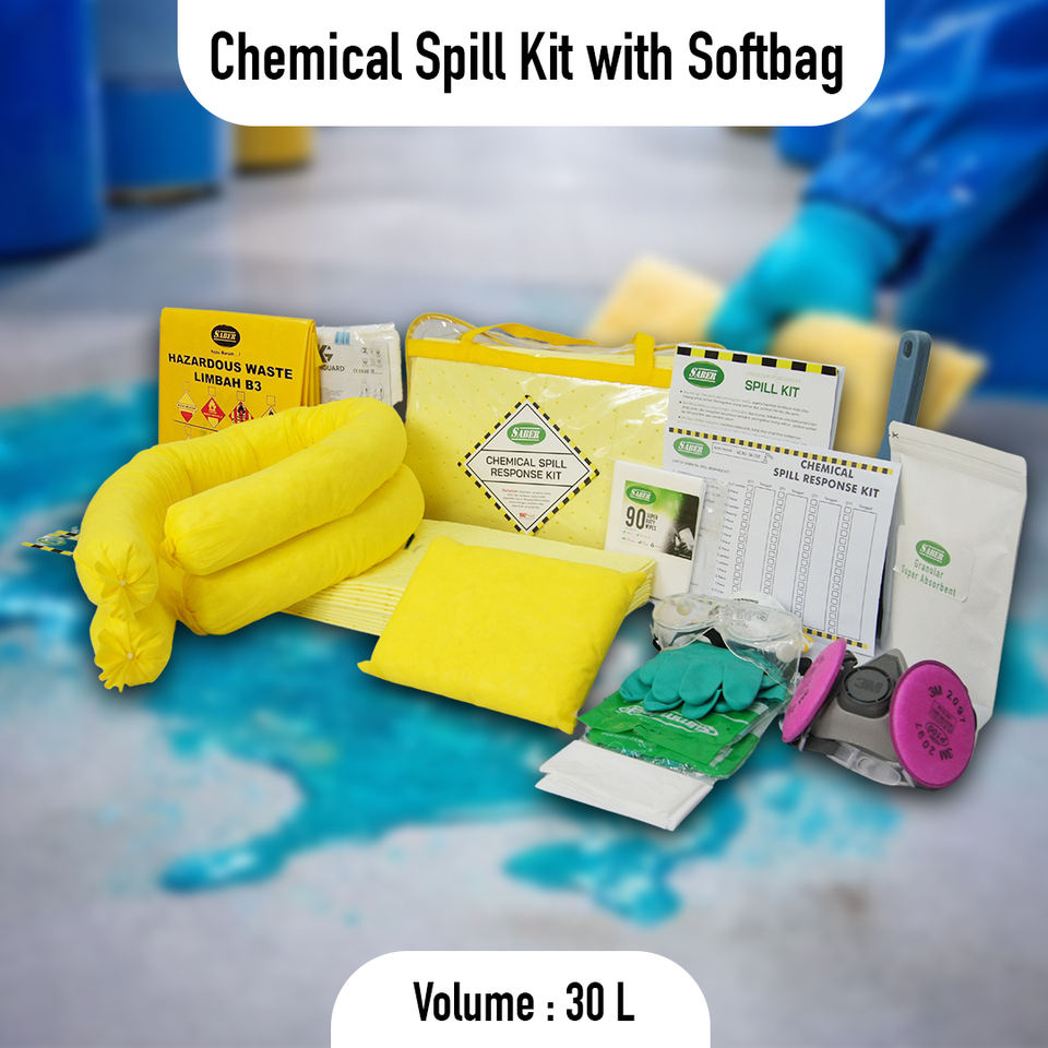 ชุดอุปกรณ์ควบคุมการรั่วไหลของสารเคมี 30 ลิตร ถุงใสแบบนิ่ม พร้อมแผ่นดูดซับ ถุงเท้า ถุงมือ ชุดควบคุมการรั่วไหลของของเหลวอันตรายในกรณีฉุกเฉิน