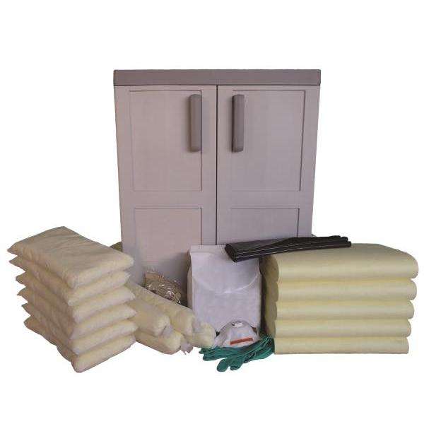 ตู้เก็บสารเคมีแบบติดผนัง ขนาด 45 x 27 x 65 ซม. สีเหลือง พร้อมวัสดุดูดซับสารเคมี ความจุ 48 ลิตร ทำจากโลหะ ทนทานต่อสารเคมี