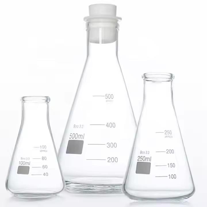 ขวดเออร์เลนเมเยอร์แบบมีสเกล ขนาด 50 มล. ทำจากแก้วบอโรซิลิเกต สำหรับห้องปฏิบัติการเคมี