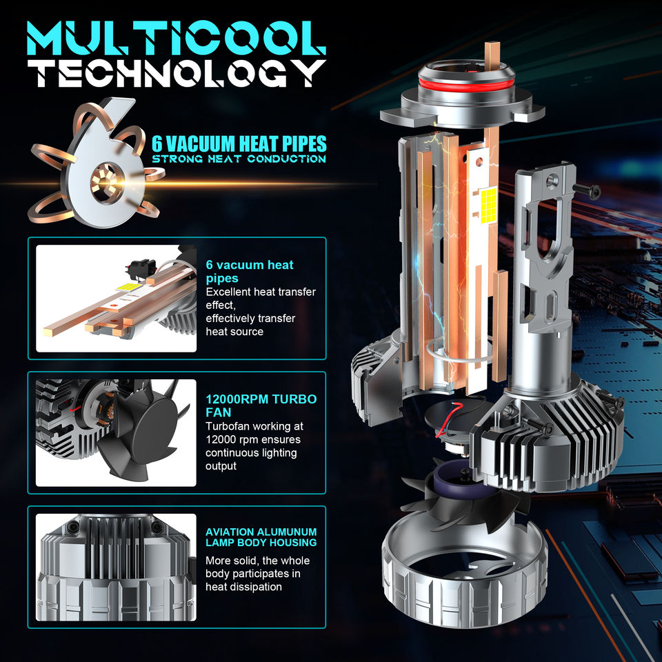 เฉินหลาง รับปรับแต่งโลโก้ หลอดไฟหน้ารถยนต์ LED กำลังสูง 360W 50000LM ระดับกันน้ำ IP68 รุ่น H1 H4 H7 880 9012 5202 H13 9005 9006 หลอดไฟหน้ารถยนต์