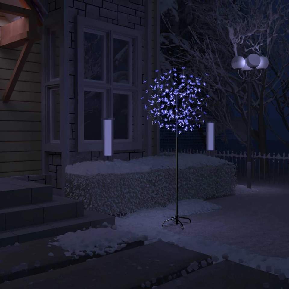 ต้นคริสต์มาสดอกซากุระยาว6ฟุตพร้อมไฟ LED สีฟ้าและสีขาว200ดวงสำหรับตกแต่งเทศกาล