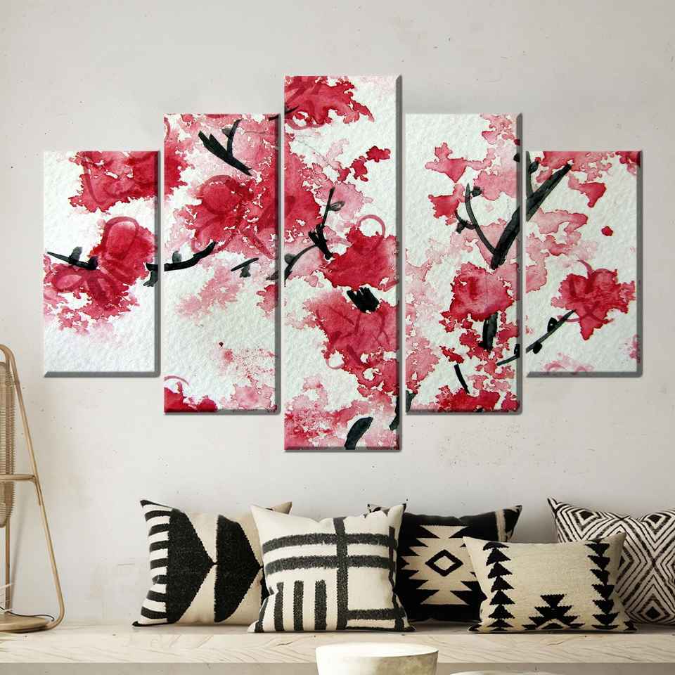 ภาพพิมพ์บนผ้าใบลายดอกซากุระ: โปสเตอร์ตกแต่งลายดอกซากุระ, ชุด 5 ชิ้น: ภาพพิมพ์แบบห่อหุ้ม
