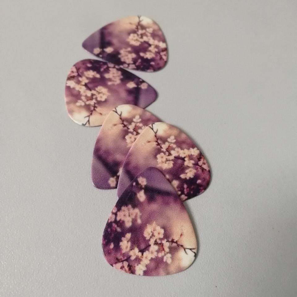 ปิ๊กกีตาร์ลายดอกซากุระ ลายพิมพ์สองด้าน ทำจากเซลลูลอยด์ จำนวน 100 ชิ้น