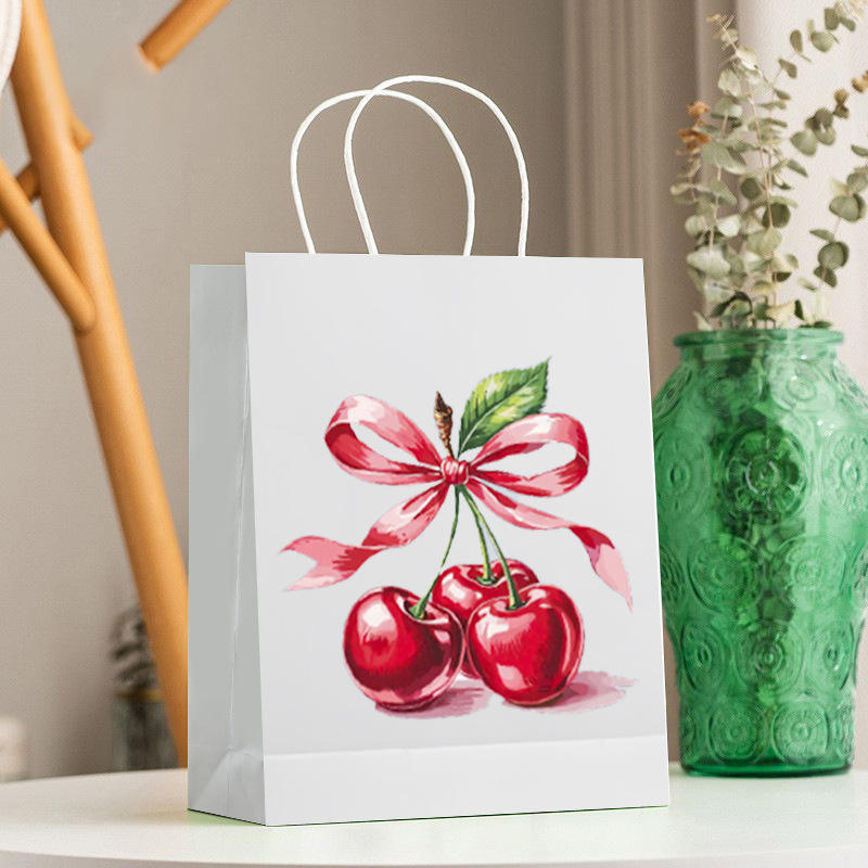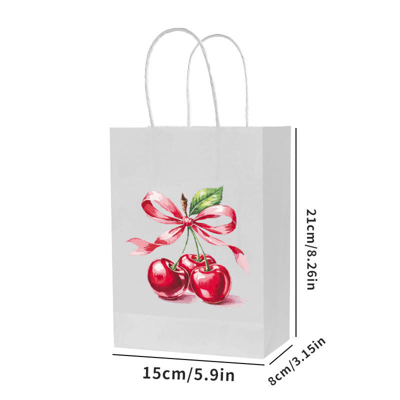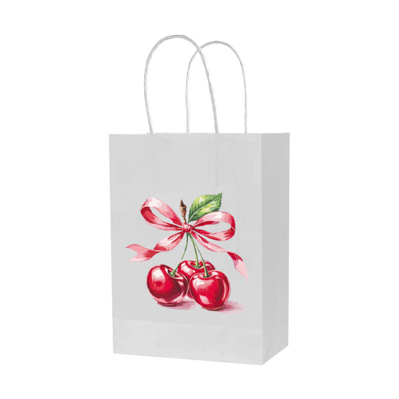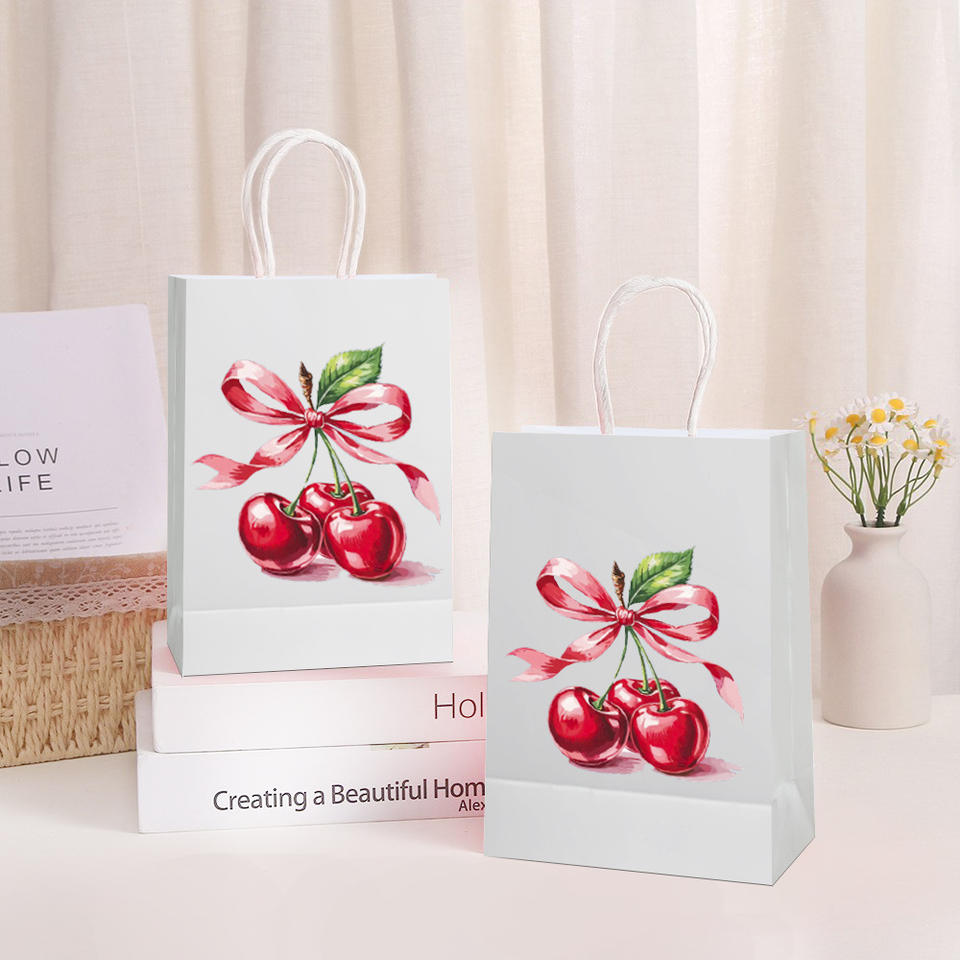 ถุงของขวัญลายโบว์เชอร์รี่ ถุงใส่ขนมพายผลไม้ ถุงของขวัญงานแต่งงาน ของขวัญวันเกิด ถุงกระดาษห่อของขวัญ