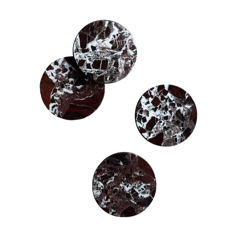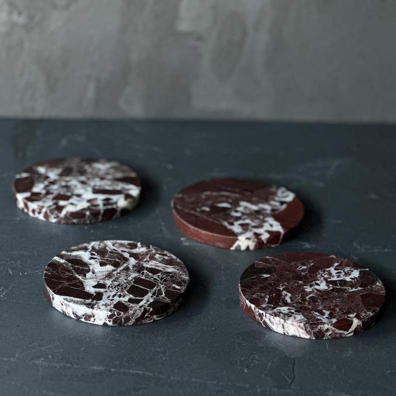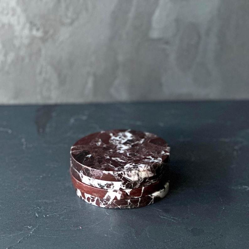 ชุดจานรองแก้วหินอ่อนสีแดงเชอร์รี่ รุ่น Rosso Levanto ทำจากหินธรรมชาติ