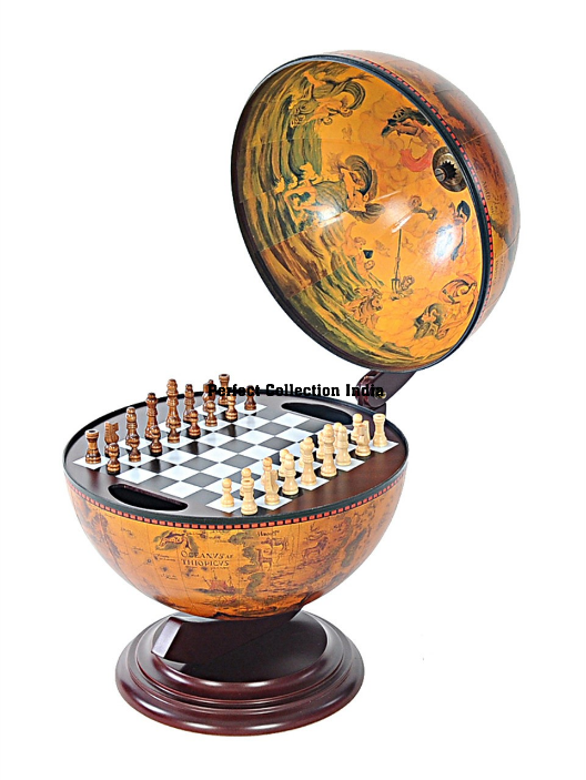 ชุดกระดานหมากรุกพร้อมอุปกรณ์ซ่อนในโต๊ะเก่าโลก13 "กระดานหมากรุกโลกสำหรับโรงแรมและบาร์การออกแบบกระดานหมากรุกแนววินเทจ