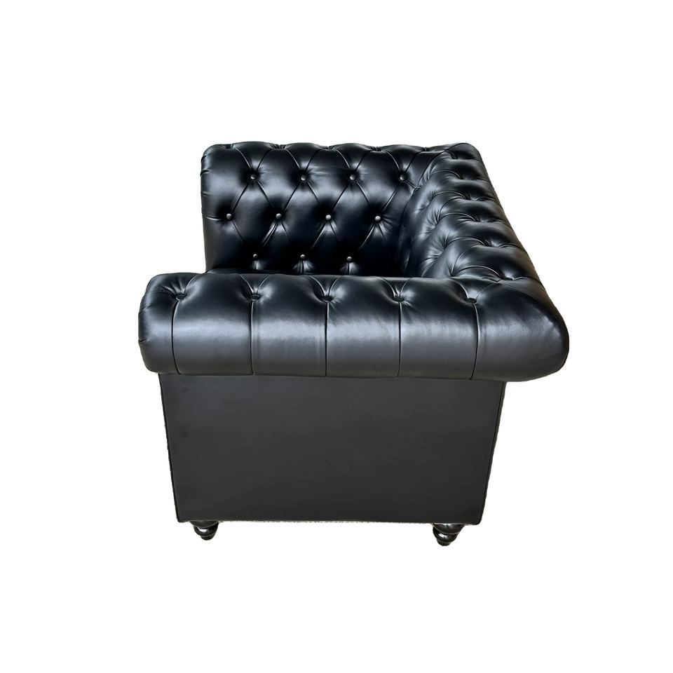 เก้าอี้เชสเตอร์หุ้มหนัง PU เก้าอี้โซฟาเดี่ยวแบบมีพนักแขนประดับหมุด