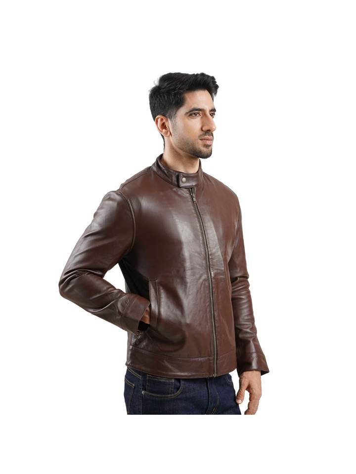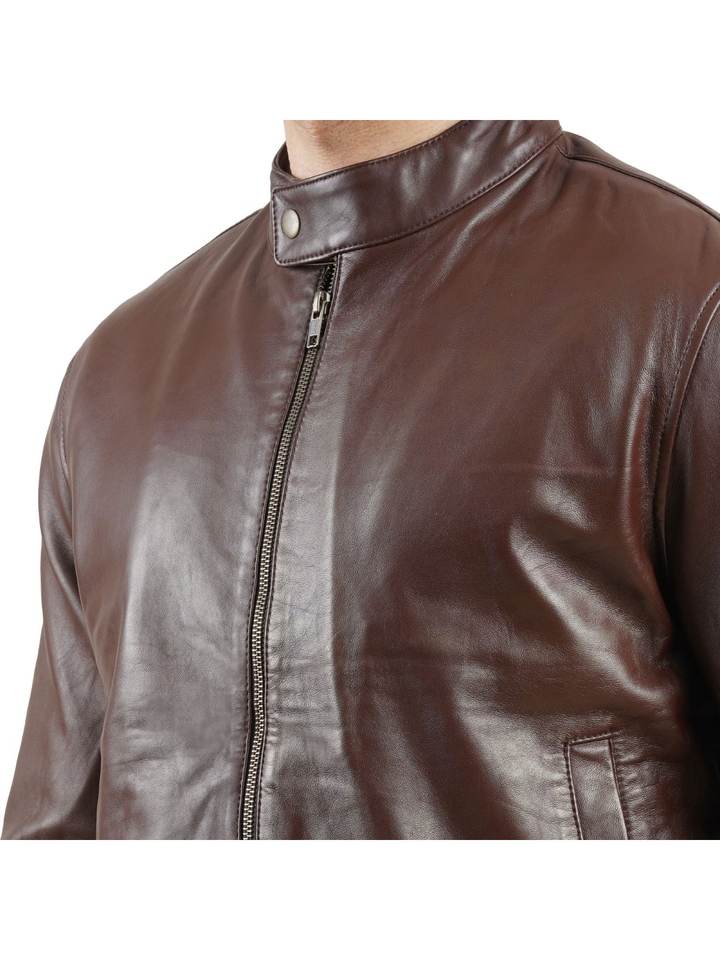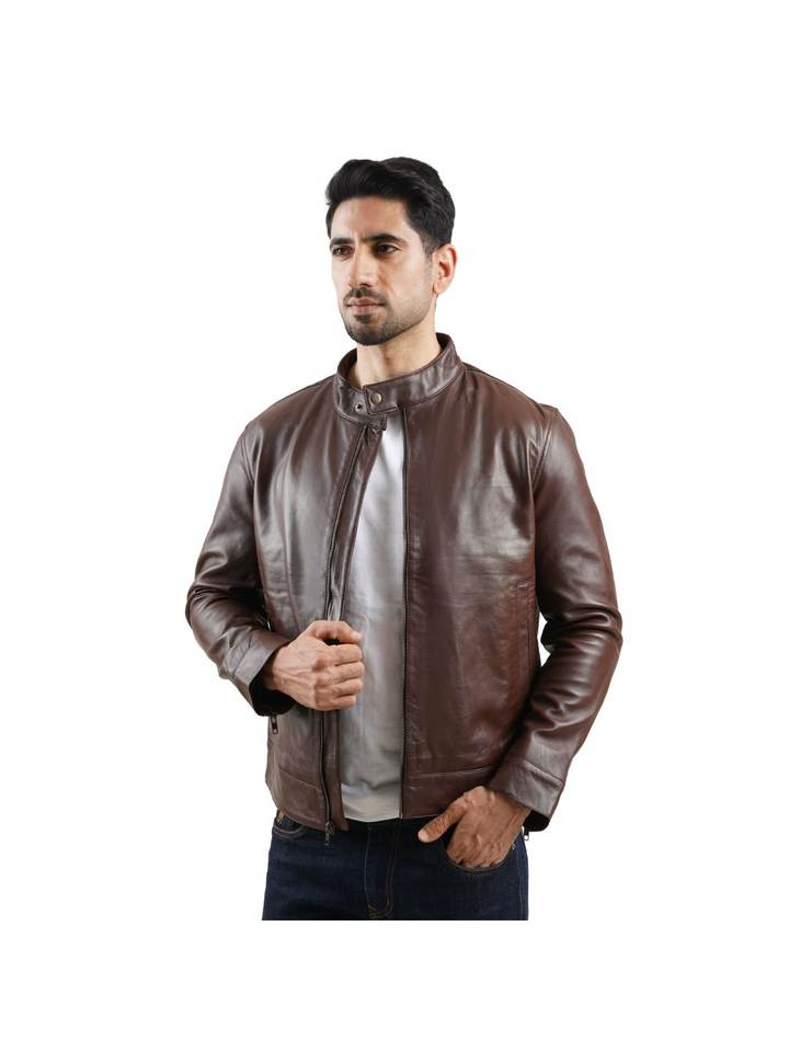 Leather Tex Chestnut Brown Cafe Racer Leather Jacket for Men | Waterproof Plus Size Winter Quilted Lining Zipper Closure
