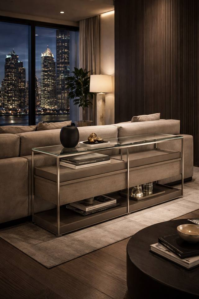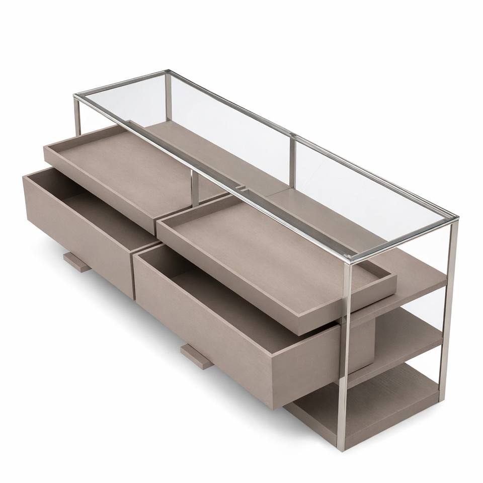 ตู้ข้างเตียงไม้และกระจกสไตล์ร่วมสมัยพร้อมโครงโลหะ - ตู้เก็บของห้องนั่งเล่นทันสมัย - ตู้แบบร่วมสมัยสั่งทำพิเศษ