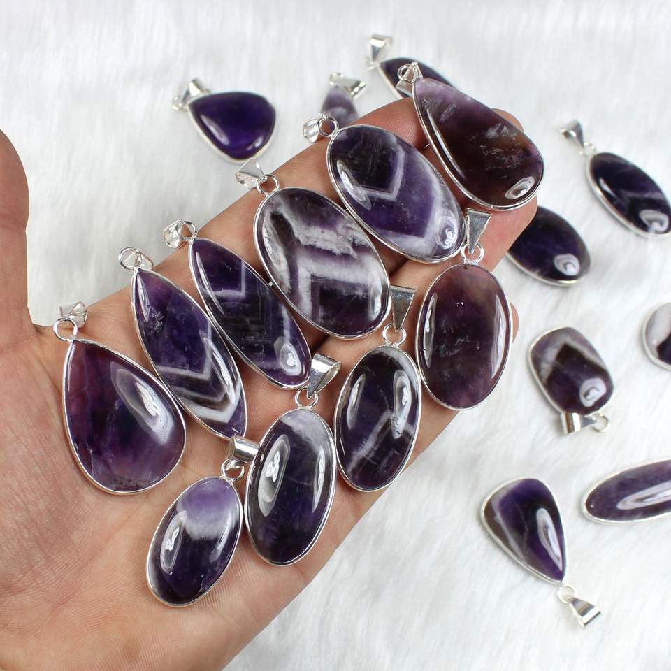 Chevron Amethyst cabs จี้เงินเครื่องประดับขายส่ง chevron Amethyst จี้ชุบเงินเครื่องประดับสร้อยคอเครื่องประดับ