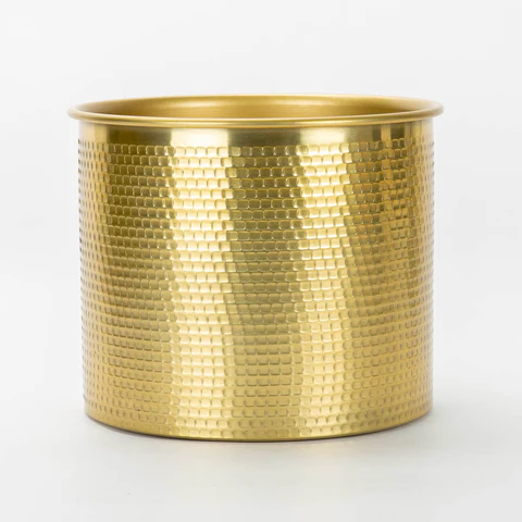 กระถางโลหะสีทองสลักลายบั้งพร้อมพื้นผิวสำหรับต้นไม้ในร่มและของตกแต่งบ้านที่ทันสมัย
