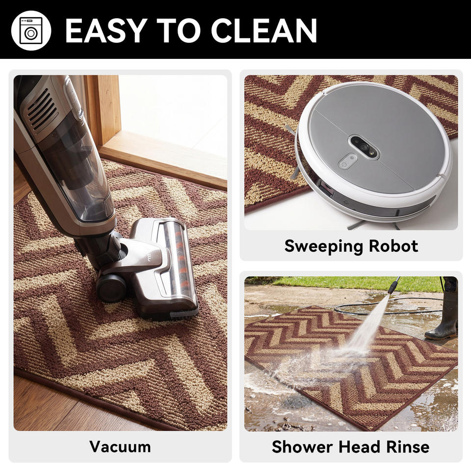 พรมเช็ดเท้าลายเชฟรอนทรงสี่เหลี่ยมผืนผ้ากันลื่นพรมทางเข้าบ้านเส้นใยโพลีเอสเตอร์