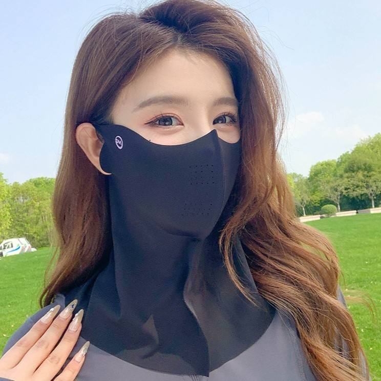 เชวีโก้ วีเมนส์ ไอซ์ ซิลค์ เฟซ มาส์ก ผ้าคลุมคอ ระบายอากาศได้ดี ป้องกันแสงแดด สำหรับกิจกรรมกลางแจ้ง ขี่จักรยาน กีฬา สีดำล้วน