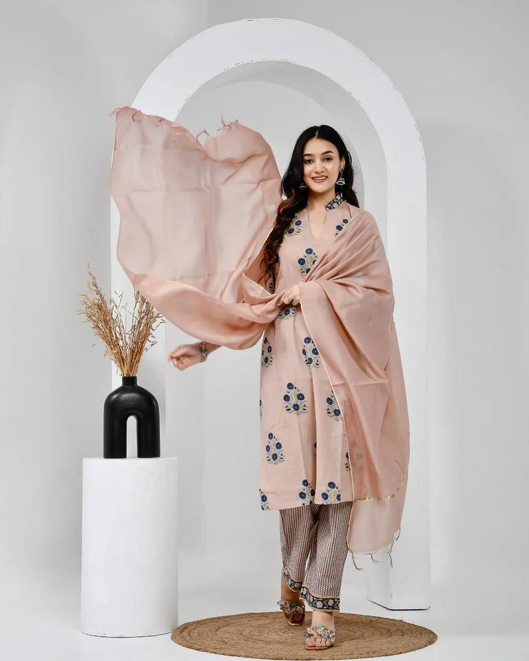 ความยาวเสื้อ Kurta:ยาวคลุมเข่า ทรงตรง