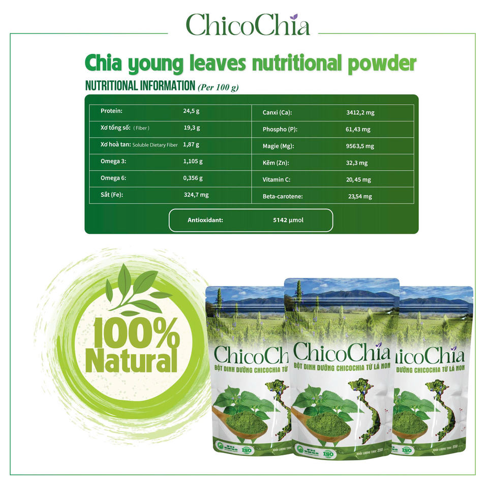 Chia Leaves Dried Nutrient Superfood Powder Adults Vietnam Origin Organic Cultivation High Fiber Wholesale Private Label Bag