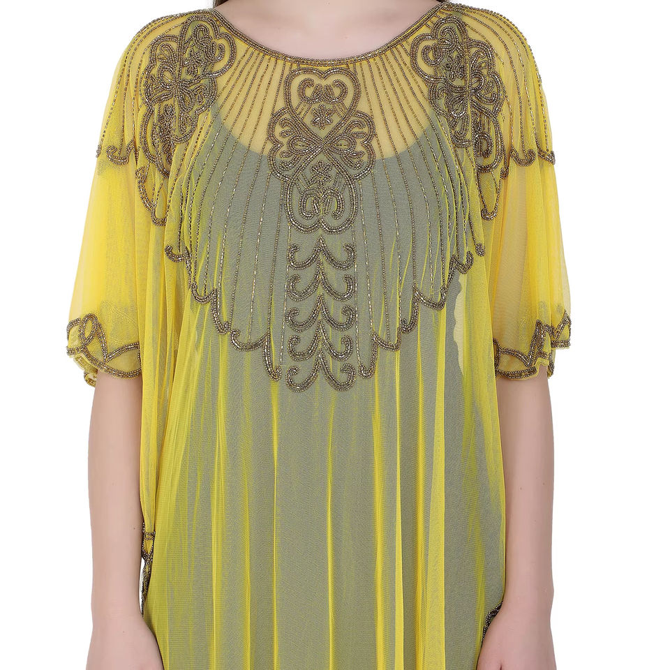 เดรสแม็กซี่ทรงตรงชิคของผู้หญิงเดรสชุดเดรสปักลายลูกปัดผ้าปอนโชเสื้อใส่เดินชายหาดแบบผ่าหนึ่งไซส์สำหรับใส่ไปงานปาร์ตี้