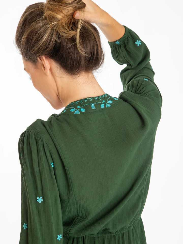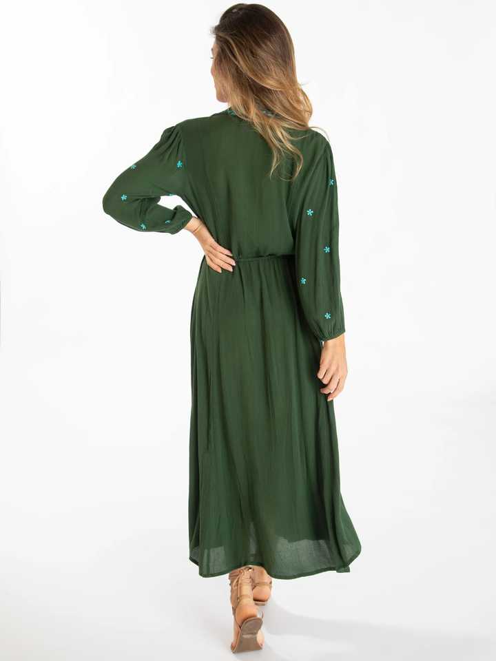 เดรสยาวปานกลางสไตล์โบฮีเมียนสำหรับผู้หญิง สวยงาม แต่งขอบด้วยริคแรค ชุดชายหาด ปักลายละเอียด ขอบหยักประณีต ประดับเลื่อมอย่างสวยงาม ดูเป็นธรรมชาติ