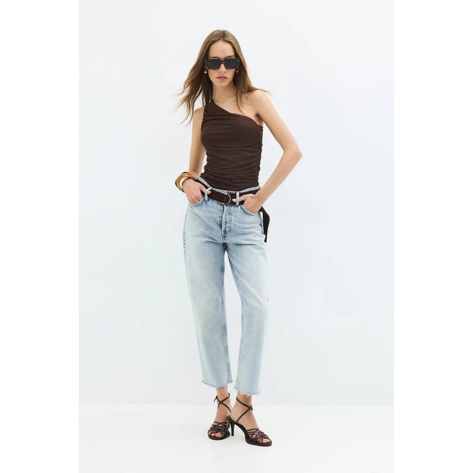 Chic Casual Women's Blouse in 100% Cotton Sleeveless Off-Shoulder with Front Logo