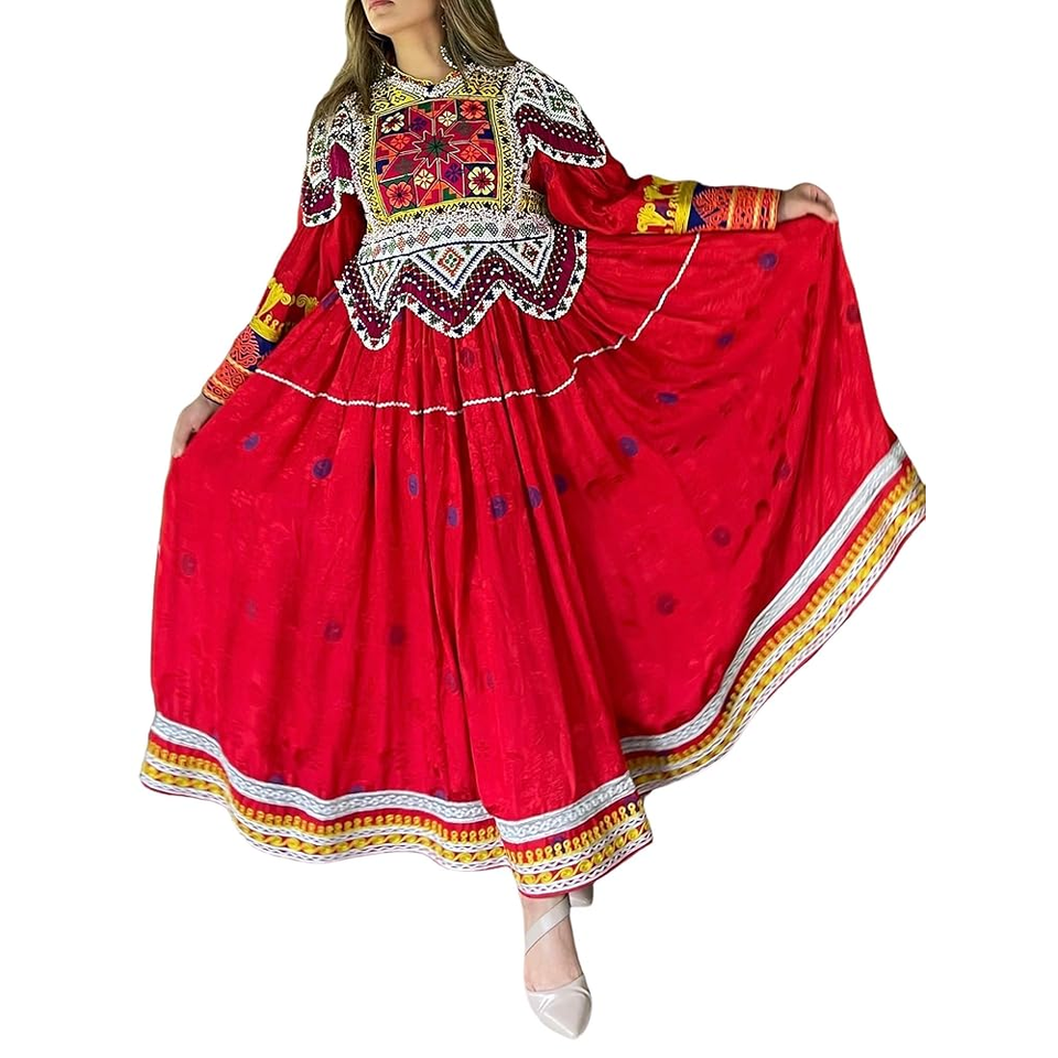 ชุดเดรส afghan kuchi แบบแฮนด์เมดคอลเลกชั่นเก๋ไก๋มรดกหลายสีปักลายคอเสื้อและแขนยาว