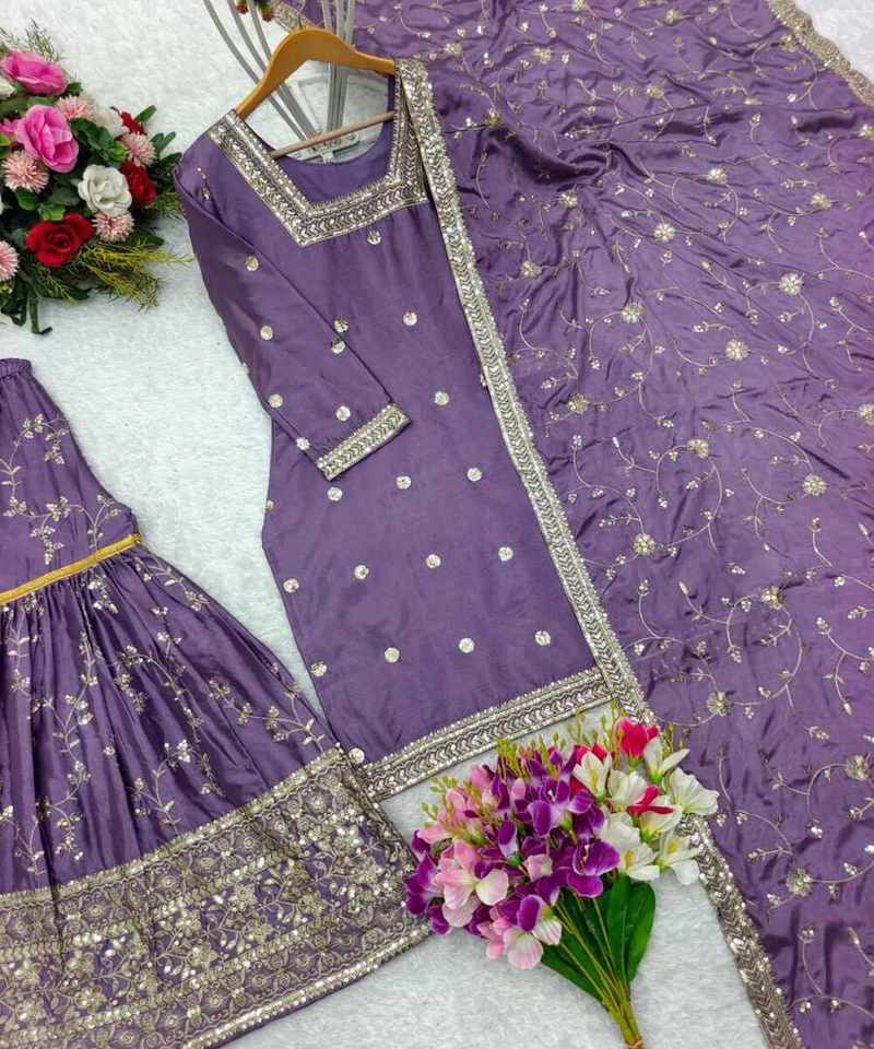 ชุด Kurta dupatta ผ้าฝ้ายสุดชิคสำหรับงานแต่งงานพร้อมงานหินหรูหราและการปักลายดอกไม้