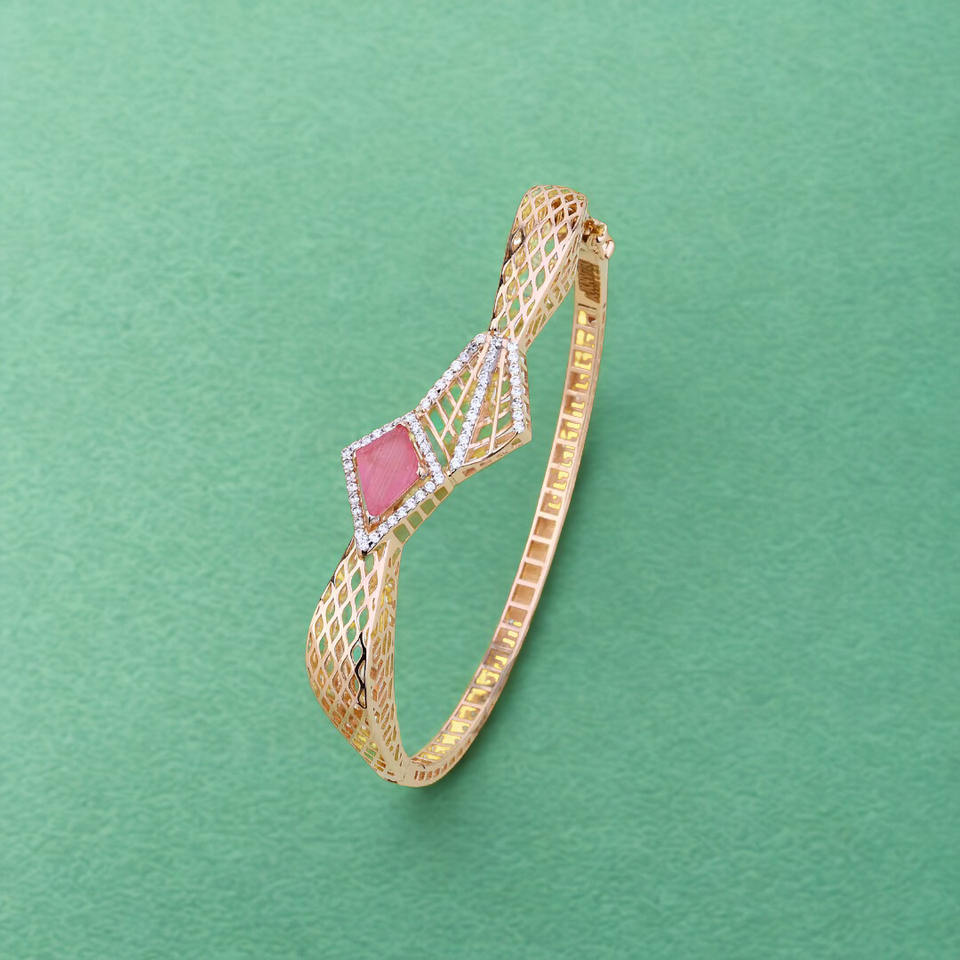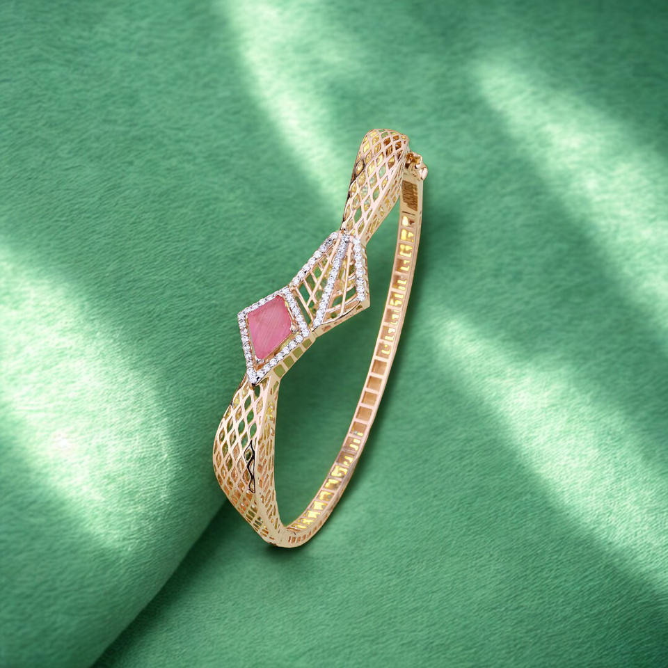 กำไลข้อมือทองประดับเพชรสำหรับผู้หญิง พร้อมหินสีชมพู ดีไซน์ลายตาข่ายทันสมัย น้ำหนักเบา สวมใส่ได้ทุกวัน