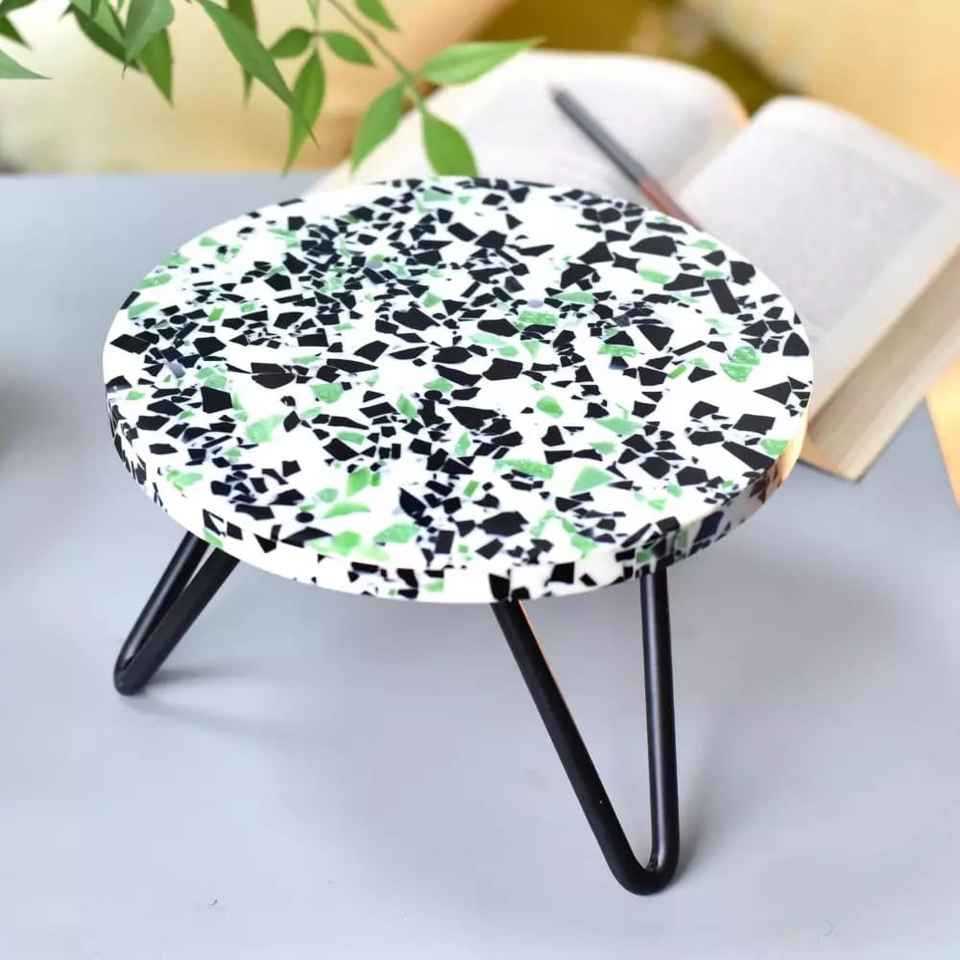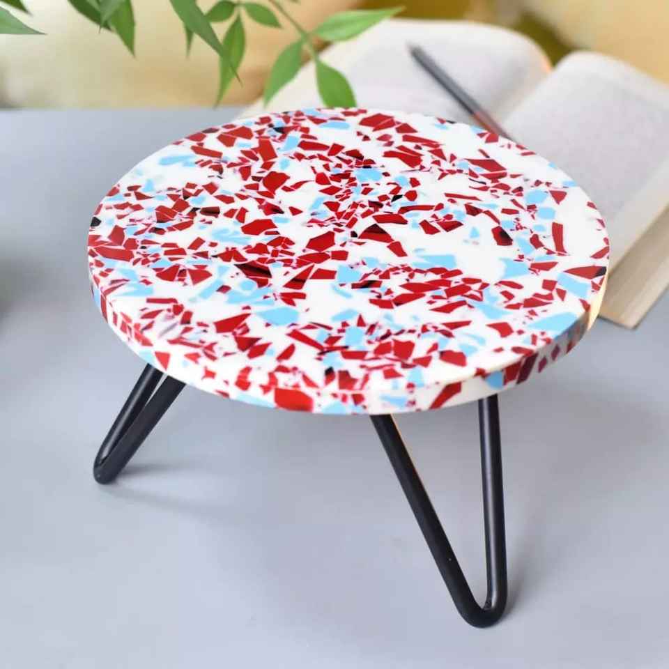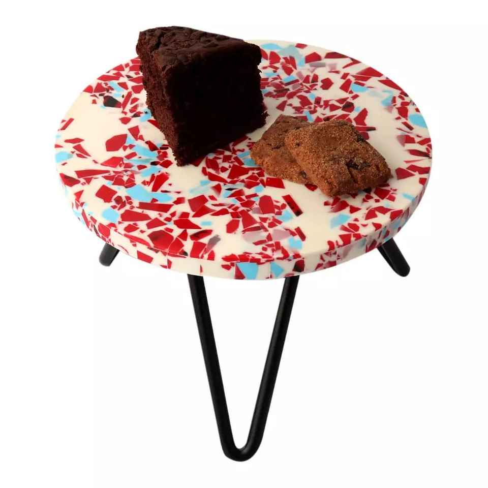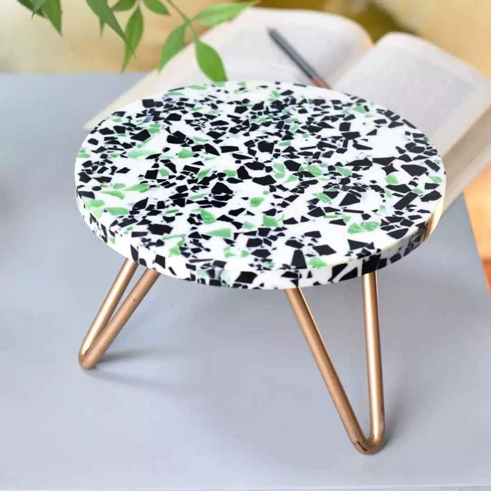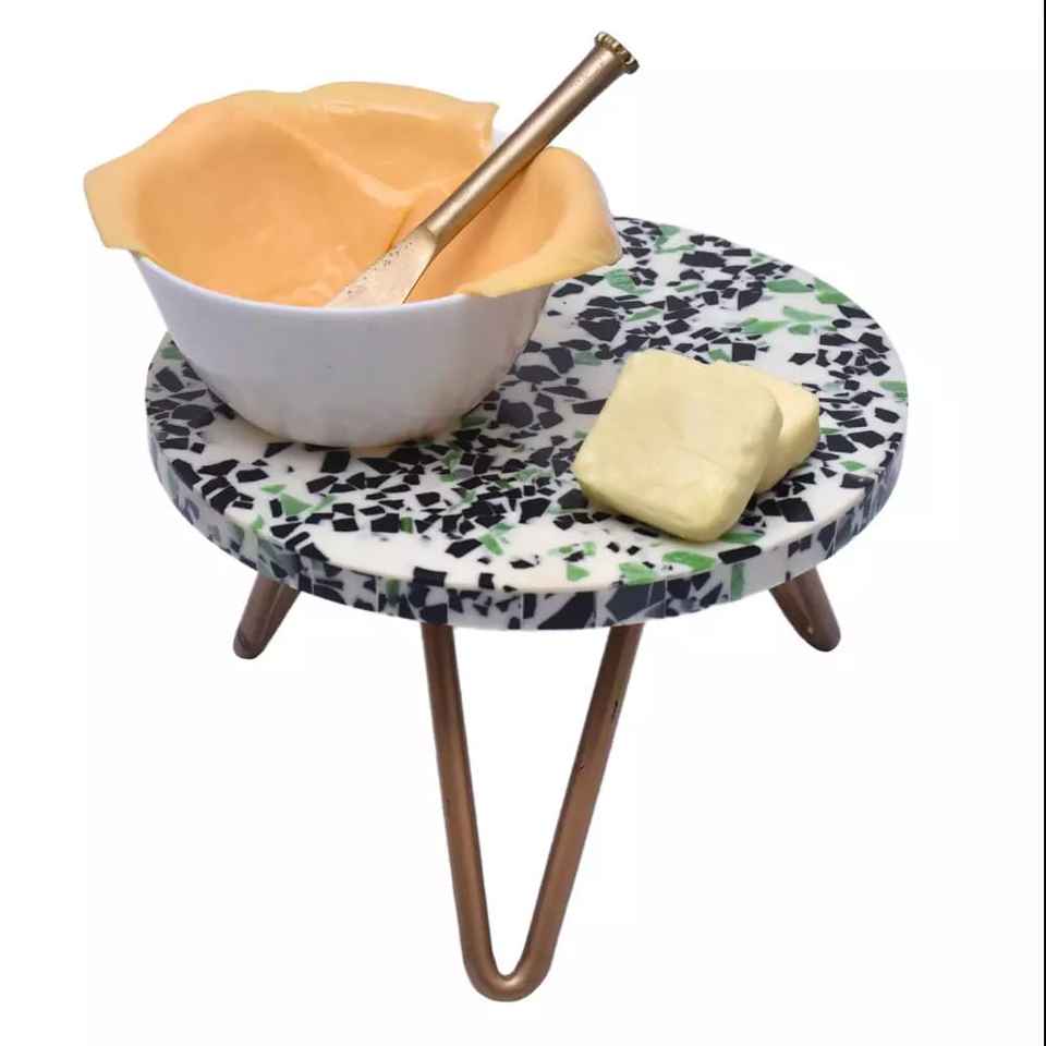 ถาดโชว์เค้กเรซินแบบอินเลย์สไตล์เก๋ไก๋ขาตั้งโลหะแบบพรีเมี่ยมที่จับขนมหวานสำหรับงานแต่งงานวันเกิดและของตกแต่งบ้าน