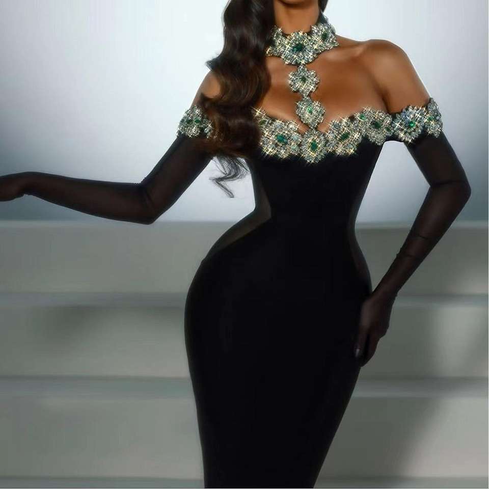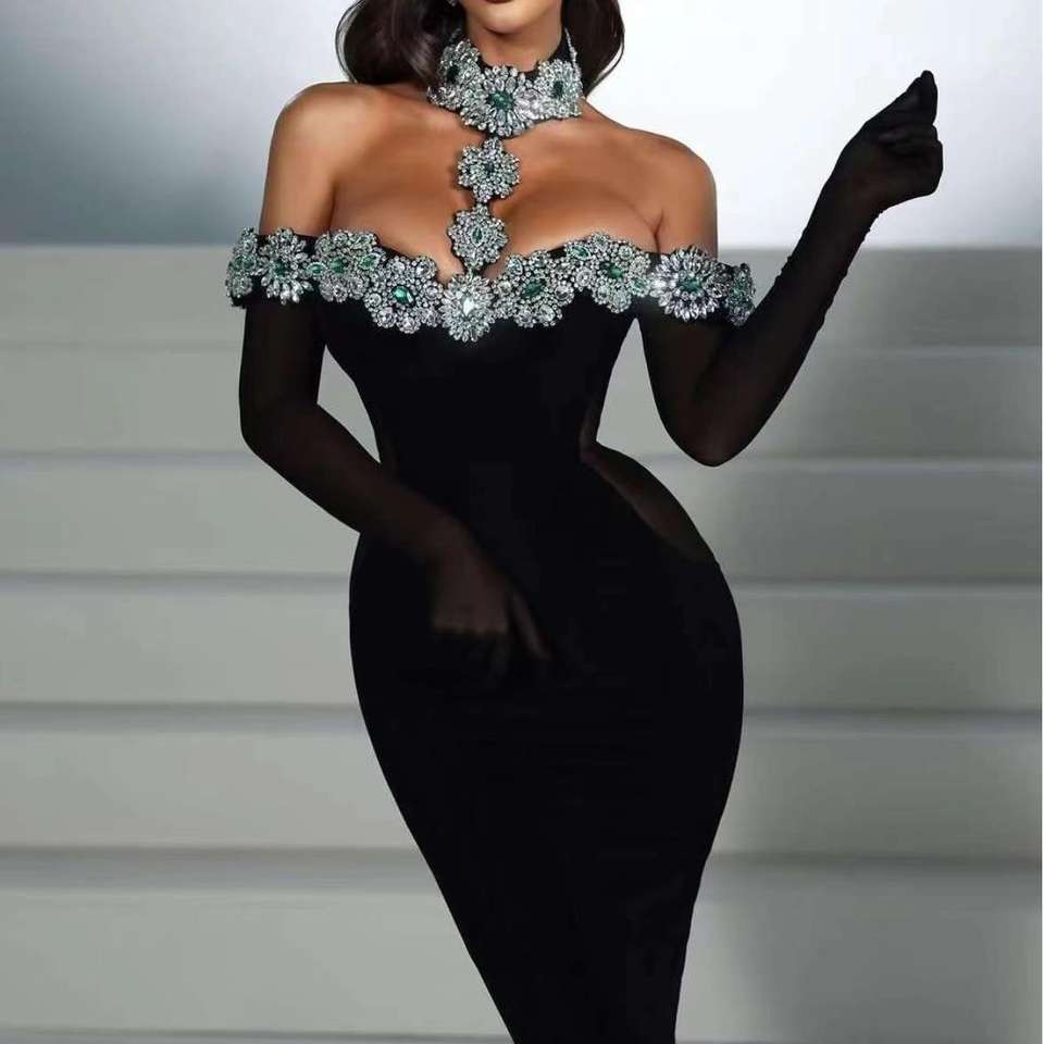 ชุดเดรสแฟชั่นหรูหราประดับคริสตัล สายคล้องคอ โชว์หลัง ทรงเข้ารูป ยืดหยุ่น ป้องกันไฟฟ้าสถิต เหมาะสำหรับงานปาร์ตี้และงานกลางคืน