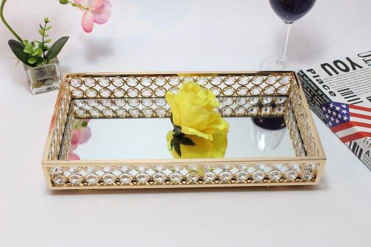 ถาดเสิร์ฟโลหะและแก้วสุดเก๋พร้อมกรอบทรงเรขาคณิตที่เพิ่มสไตล์และใช้งานได้ดีกับอุปกรณ์บริการของคุณ