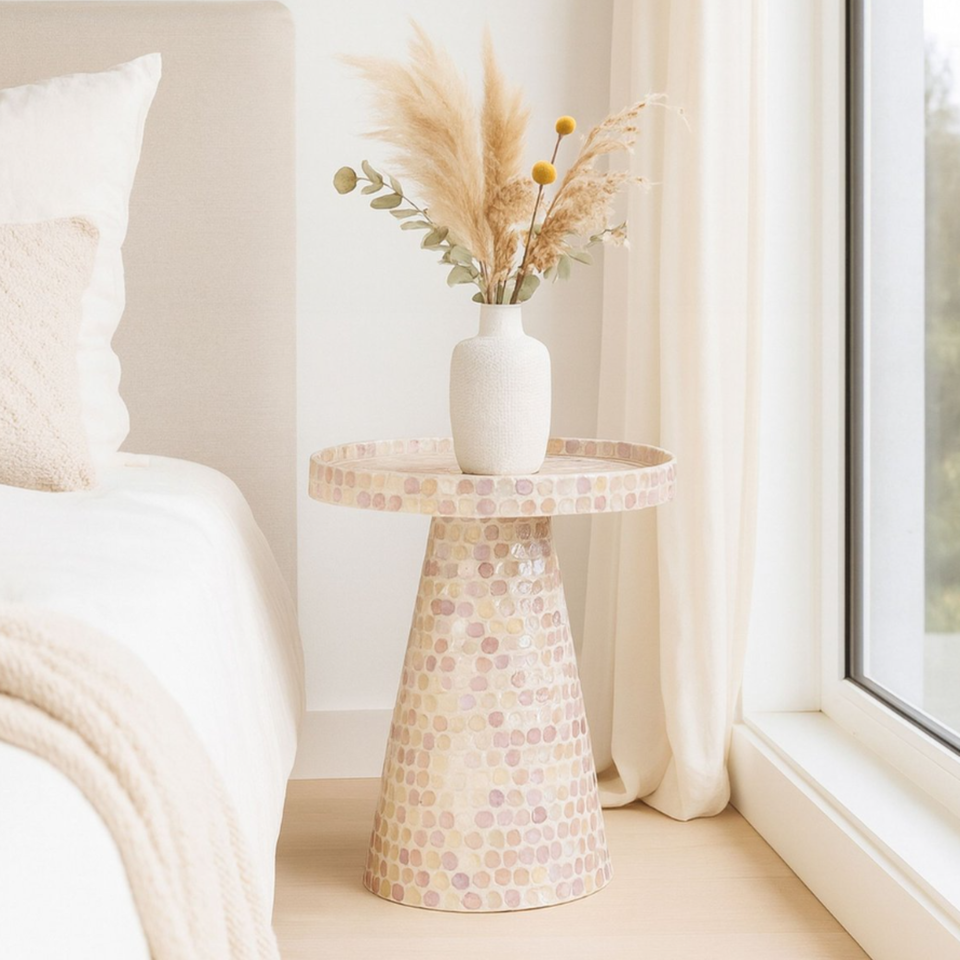 โต๊ะข้างมุกสุดชิคโต๊ะถูพื้นแบบฝังพื้นขัดมันเหมาะสำหรับห้องนั่งเล่นงานแฮนด์เมดในเวียดนาม