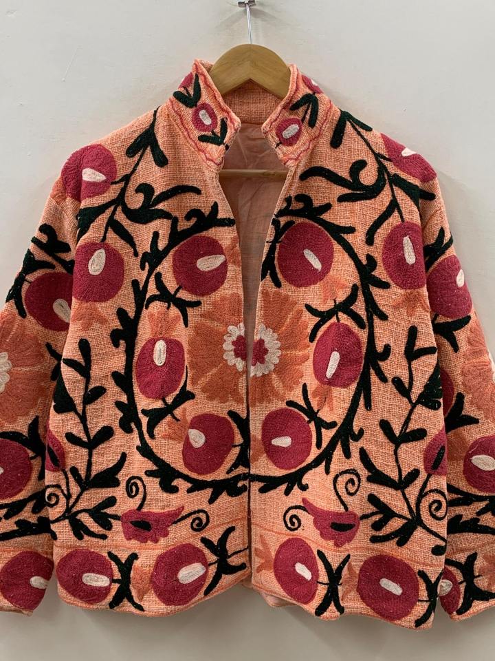 Suzani เสื้อแจ็คเก็ตปักลายดอกไม้สำหรับผู้หญิงเสื้อนอกสุดชิคตามฤดูกาล