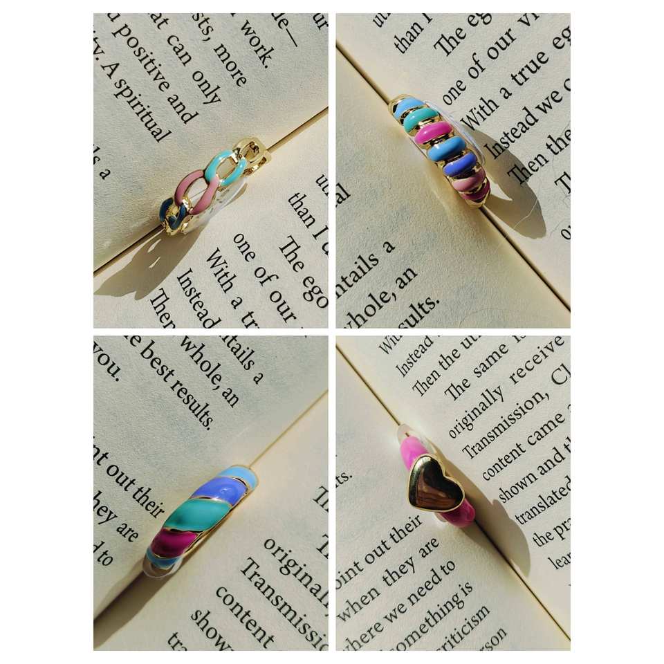 แหวนนิ้วเคลือบทองลายโซ่แบบพาสเทลเก๋ไก๋ พร้อมดีเทลหรือลวดลายหลากสีสัน เหมาะสำหรับเป็นของชำร่วยในงานปาร์ตี้ธีมแมว