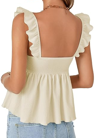 เสื้อแขนกุดมีสายรัดจีบเก๋ๆยาวสั้นสวมใส่สบายเสื้อผ้าลำลองสีครีมคอวีสำหรับฤดูร้อน