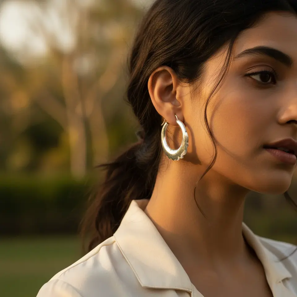 ต่างหูห่วงทรงหอยเชลล์สีเงินสุดชิคสำหรับแฟชั่นประจำวันของผู้หญิง