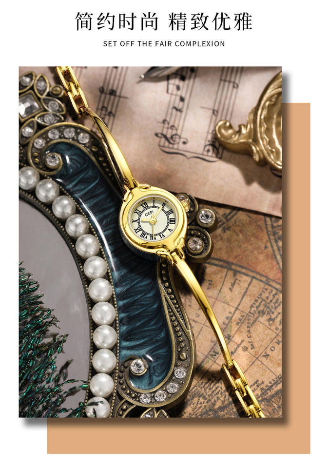 นาฬิกาข้อมือผู้หญิงแบบบางเฉียบ ดีไซน์มินิมอล สไตล์วินเทจ ใช้กลไกควอตซ์
