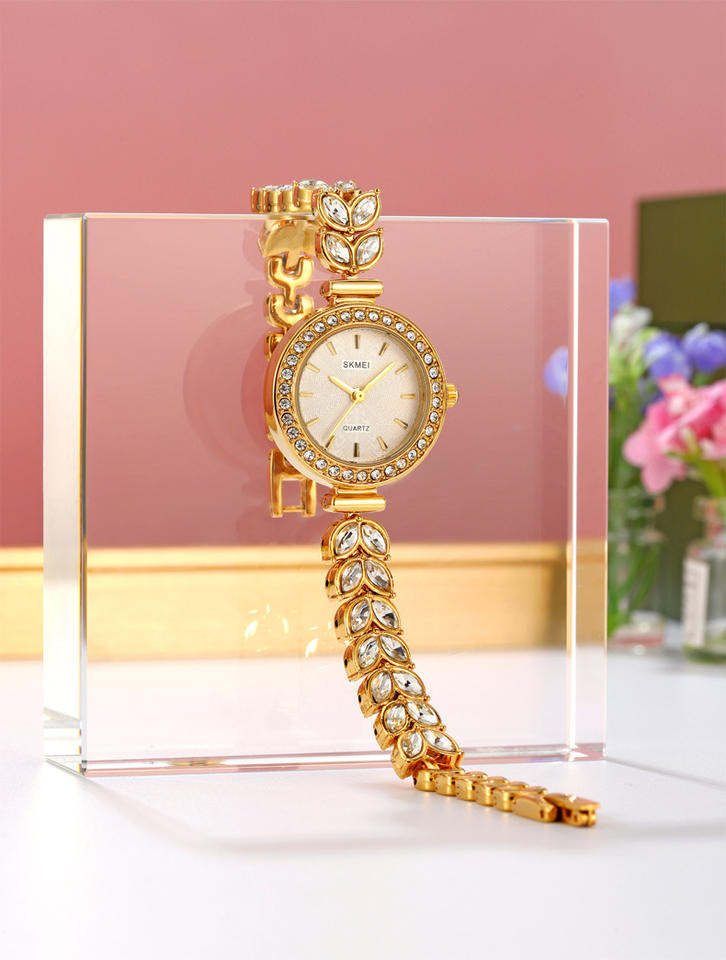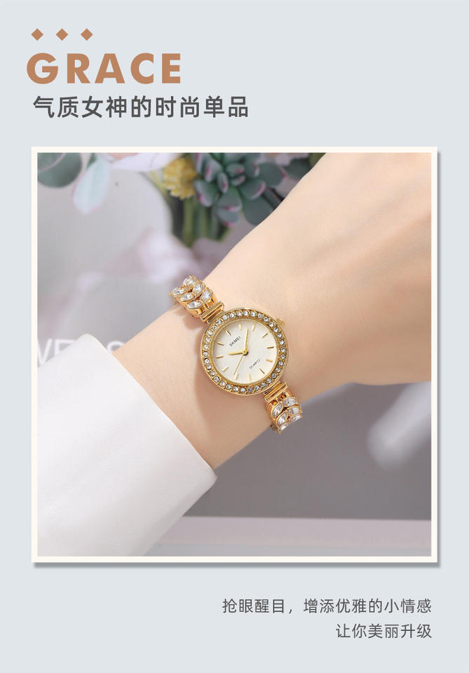 นาฬิกาควอตซ์สำหรับผู้หญิงดูหรูหราเป็นประกายเก๋ไก๋