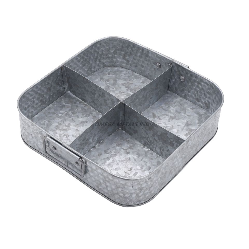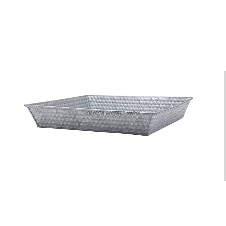 ถาดเสิร์ฟชุบสังกะสีทรงสี่เหลี่ยมเก๋ไก๋พร้อมดีไซน์พื้นผิวและขอบแข็งแรงเหมาะสำหรับการตกแต่งแบบชนบทและใช้งานได้หลากหลาย