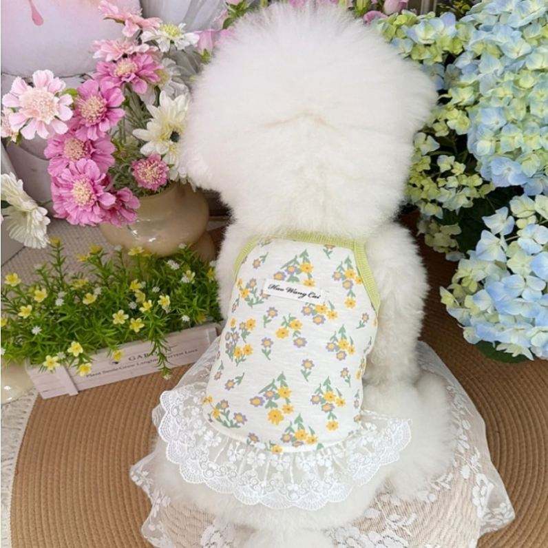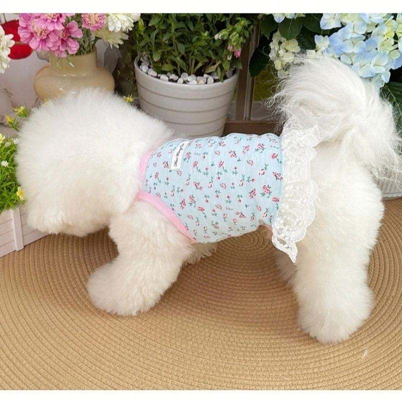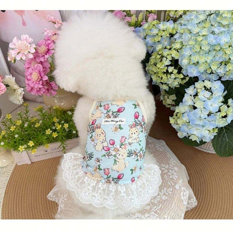 กระโปรงโพลีเอสเตอร์ลายลูกไม้สุดชิคเสื้อผ้าสำหรับสัตว์เลี้ยงสำหรับสุนัขและลูกสุนัขตัวเล็กไซส์ Xs ลายสัตว์น่ารักสำหรับชิวาวาและลูกแมว