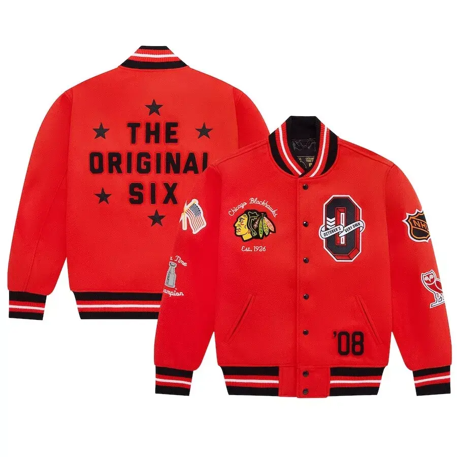 แจ็กเก็ตทีมตัวแทนทีม Chicago BlackHawks Ovo x Red แบบ full-SNAP ใหม่ในบรรจุภัณฑ์