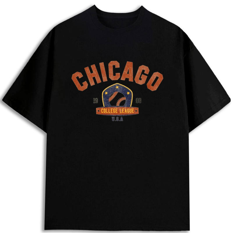 เสื้อยืดเบสบอลชิคาโก คอลเลจ ลีก ผู้ชาย ผ้าฝ้าย 100 เปอร์เซ็นต์ ทรงปกติ น้ำหนักมาก สหรัฐอเมริกา