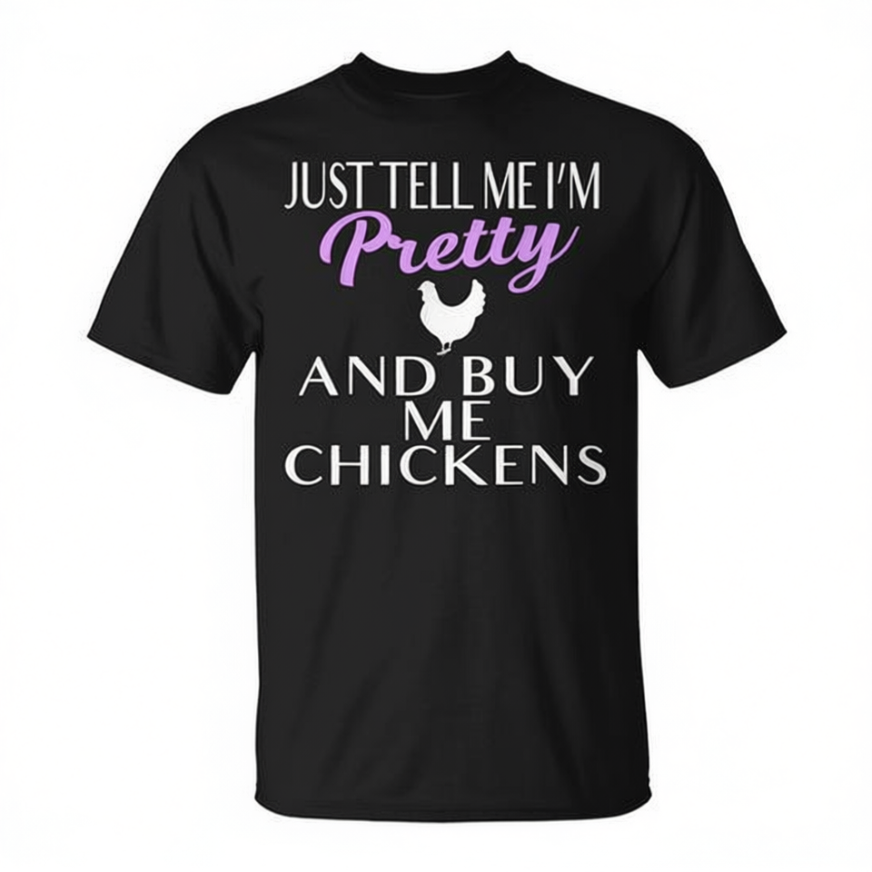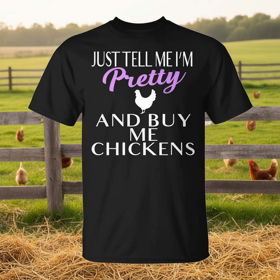 เสื้อยืด Chicken Lady บอกฉันว่าฉันสวยแล้วซื้อไก่มาให้ฉัน เสื้อผ้าสำหรับคนรักไก่แบบโปรโมชั่น